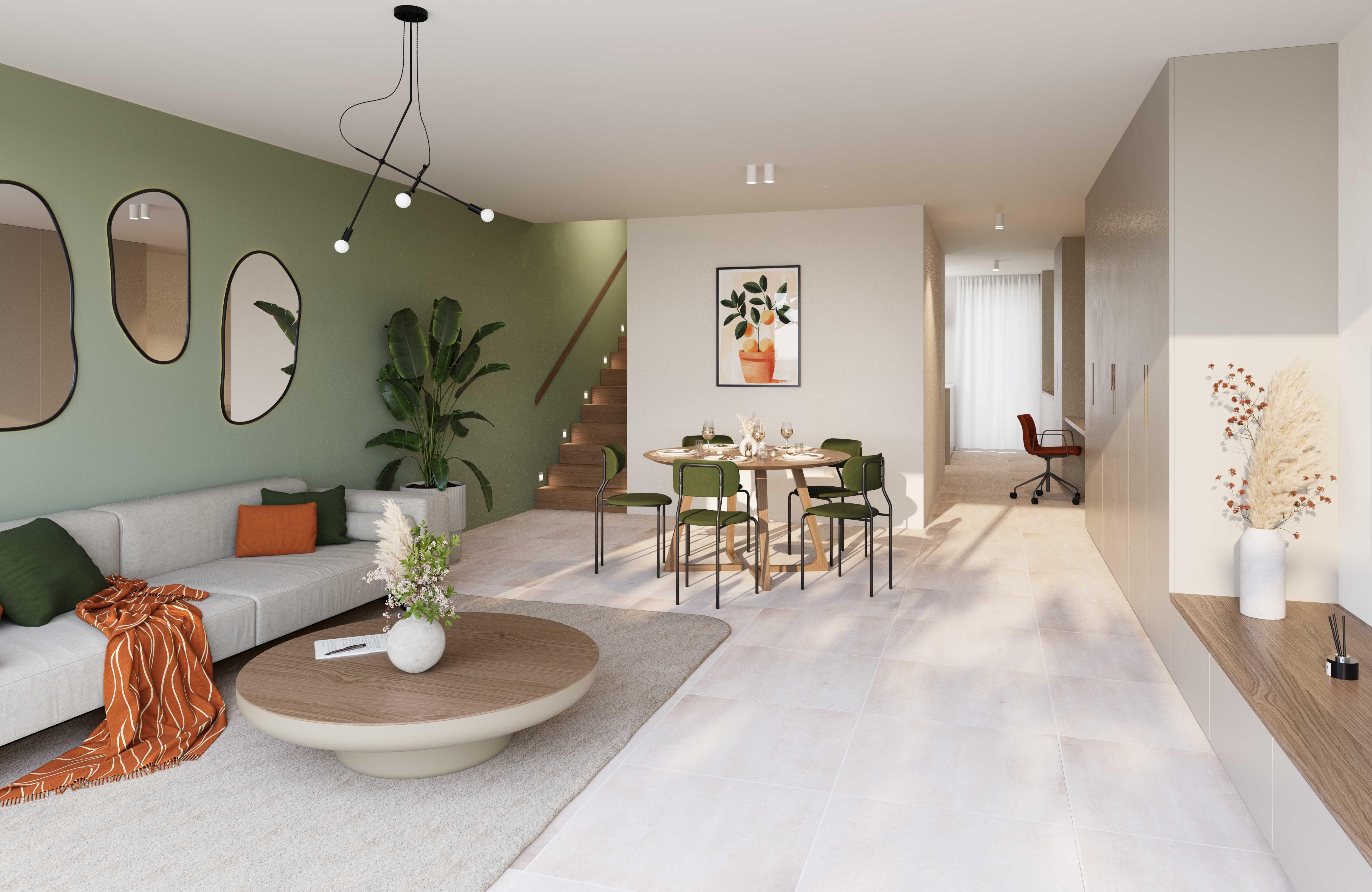 - Bovengronds: extra inpandige gemeenschappelijke fietsenstalling, gemeenschappelijke groenruimte
